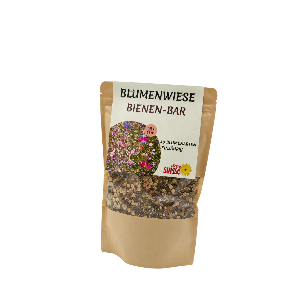 Il mix di fiori selvatici "Bee Bar" di Terre Suisse dovrebbe essere seminato idealmente da metà aprile a fine maggio. Questo periodo offre condizioni ottimali per la germinazione e la crescita dei semi. Il mix di semi "Bee Bar" di Terre Suisse contiene un'ampia varietà di specie e varietà di fiori, potenzialmente fino a 40 tipi diversi. Alcuni dei fiori che potrebbero essere inclusi in questo mix sono il convolvolo, il papavero della California, il lino rosso e blu e molte altre piante da fiore che creano un paesaggio colorato e variegato. L'altezza dei fiori nel mix "Bee Bar" varia in genere da 15 a 75 cm, anche se alcune specie possono crescere più alte.
